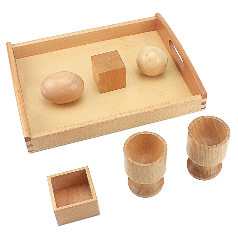 amazing Unisex Baby Toy Montessori 3D Object Fitting Exercise Egg Ball with Cup Cube with Wooden Box Early