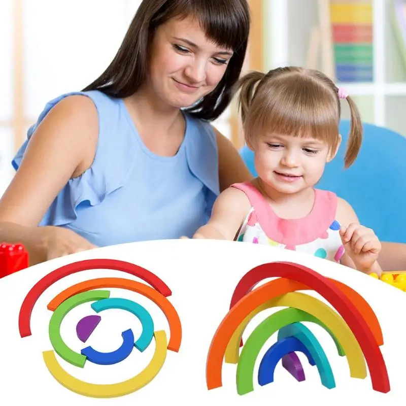 amazing Wooden block rainbow kids children building blocks wooden toys baby early learning montessori educa