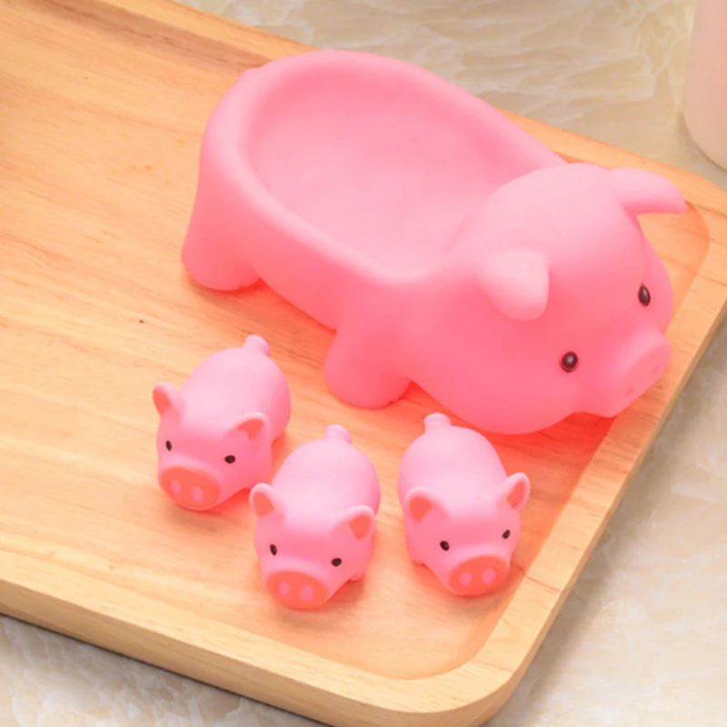 discount Hot-4 Piece/Set Lovely Pink Pig Shaped Baby Bath Toy Rubber Float Squeaky Toy Bath Toy