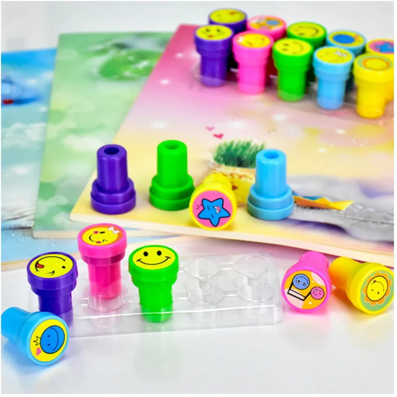 New 10pcs/Set Children Toy Stamps Cartoon Smiley Face Kids Seal For Scrapbooking Stamper DIY Painting P