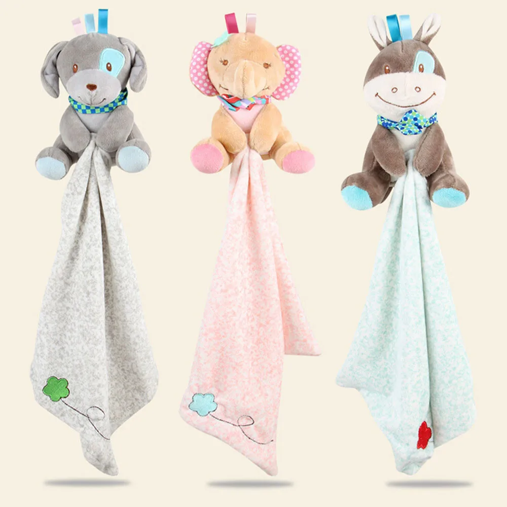 astounding Popular Babies Plush Soothing Comfort Towel Cute Cartoon Animals Shape Bear Puppy Security Blanket