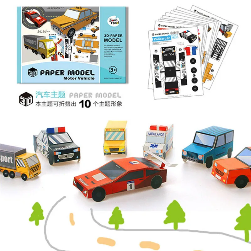 remarkable 6 Subjects Children Cartoon 3D Paper Model Craft Toy include Animals Vehicle Kitchen Color Paper Ki